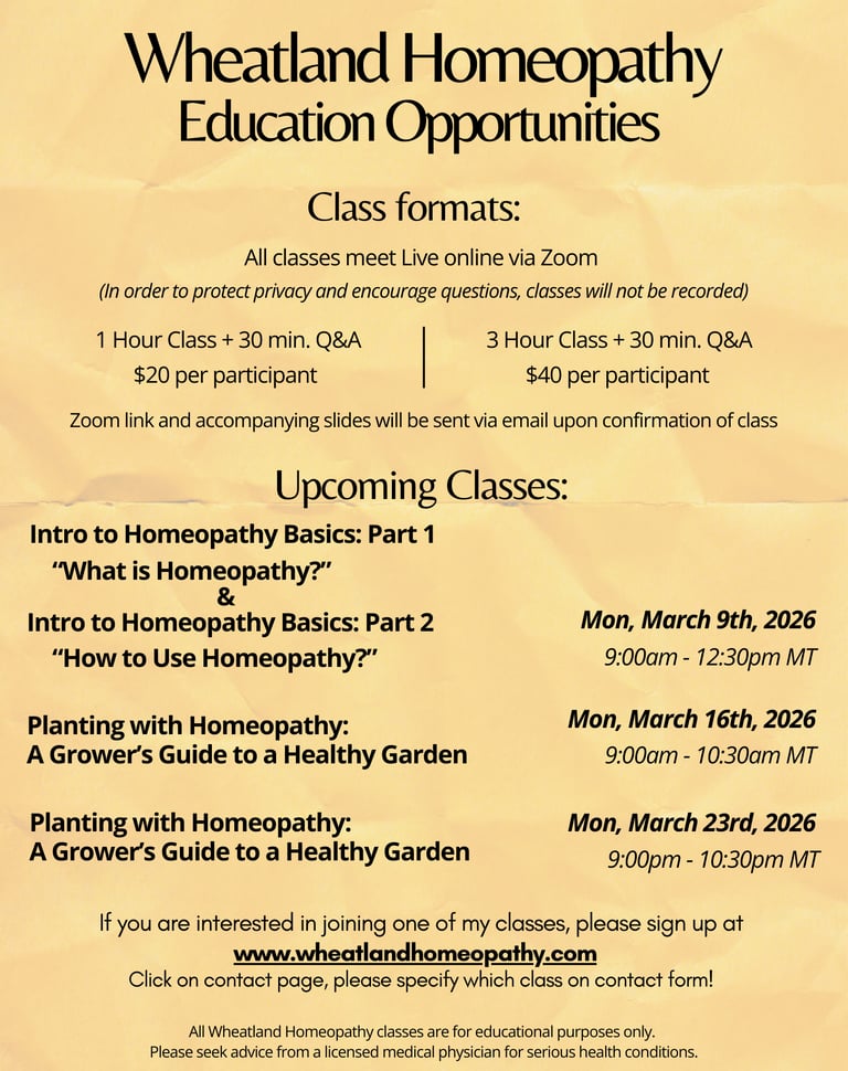 Wheatland Homeopathy Education Opportunities